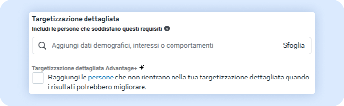 - Targetizzazione dettagliata (come interessi e comportamenti)