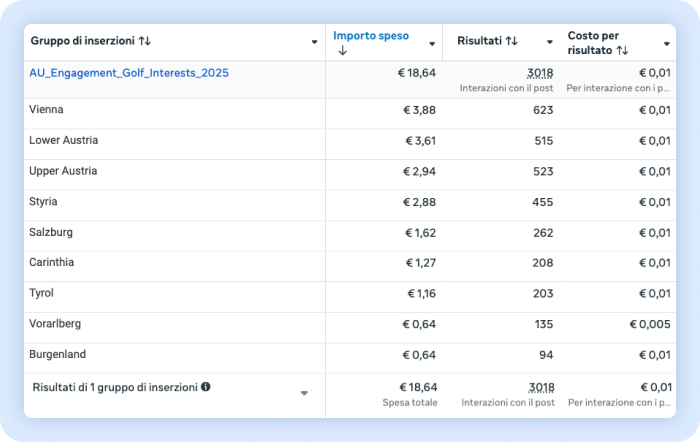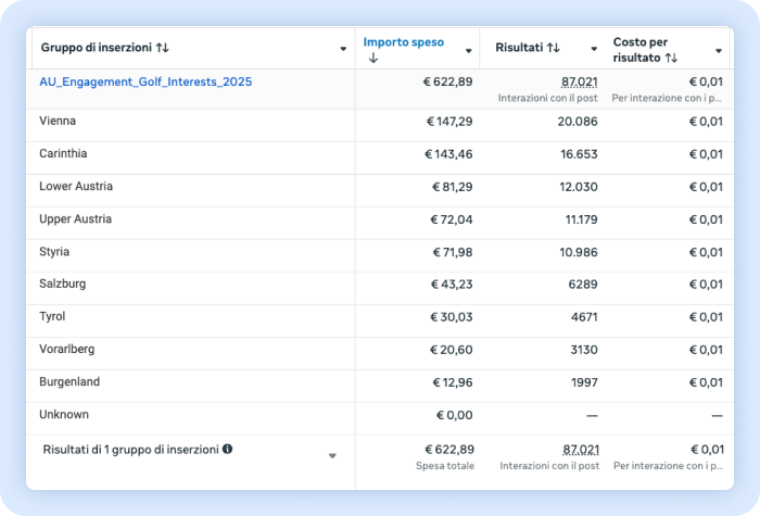 Dovevamo fare una campagna in Austria, con particolare attenzione alla regione della Carinzia. Abbiamo inizialmente lanciato la campagna sull’intero stato a livello geografico, ed ecco i primissimi dati: