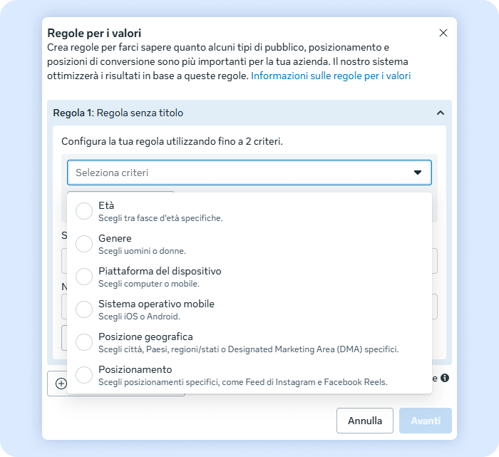 Come creare le Value Rules su Meta